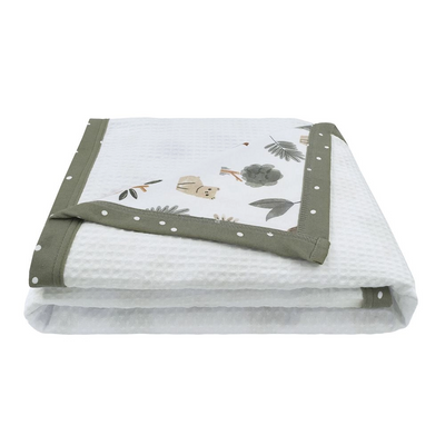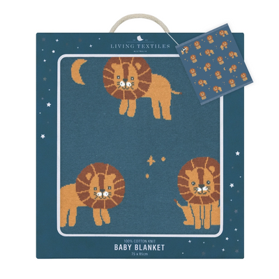 Keep baby warm and cosy when out and about with this super soft 100% cotton knit lion baby blanket. Perfectly sized for the pram or bassinet, this lightweight blanket will add a dose of style to an adventure. Presented in a gorgeous gift box, it also makes the perfect gift.