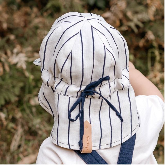 Bedhead Heritage Lounger Baby Flap Hats are light on heads, making them the ideal first hat for babies as they forget they're wearing them! The soft flap lies flat behind baby's neck while they're in a pram or baby carrier, and the brim is slightly upright letting them see the world. Made from 100% eco-friendly linen which can self-cool in summer and warm in winter, the Lounger hat provides UPF50+ sun protection without overheating little heads.