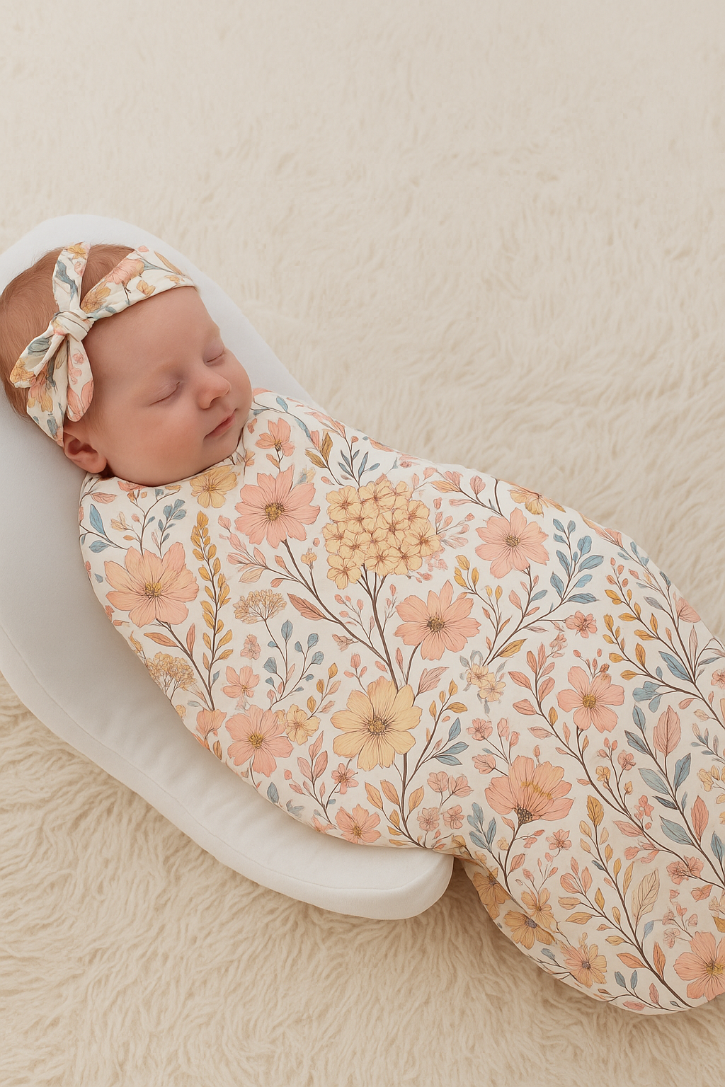Thoughtfully designed, beautifully soft, and endlessly practical, the Peachy Floral swaddle is a nurturing essential — wrapping your baby in comfort, security, and gentle beauty from day one.