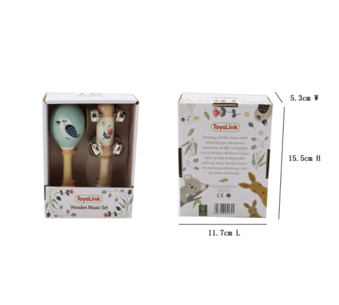 Wooden Kookaburra Maraca & Waratah Jingle Stick Musical Set