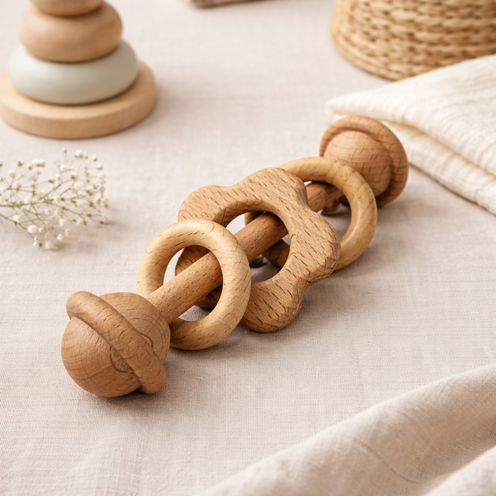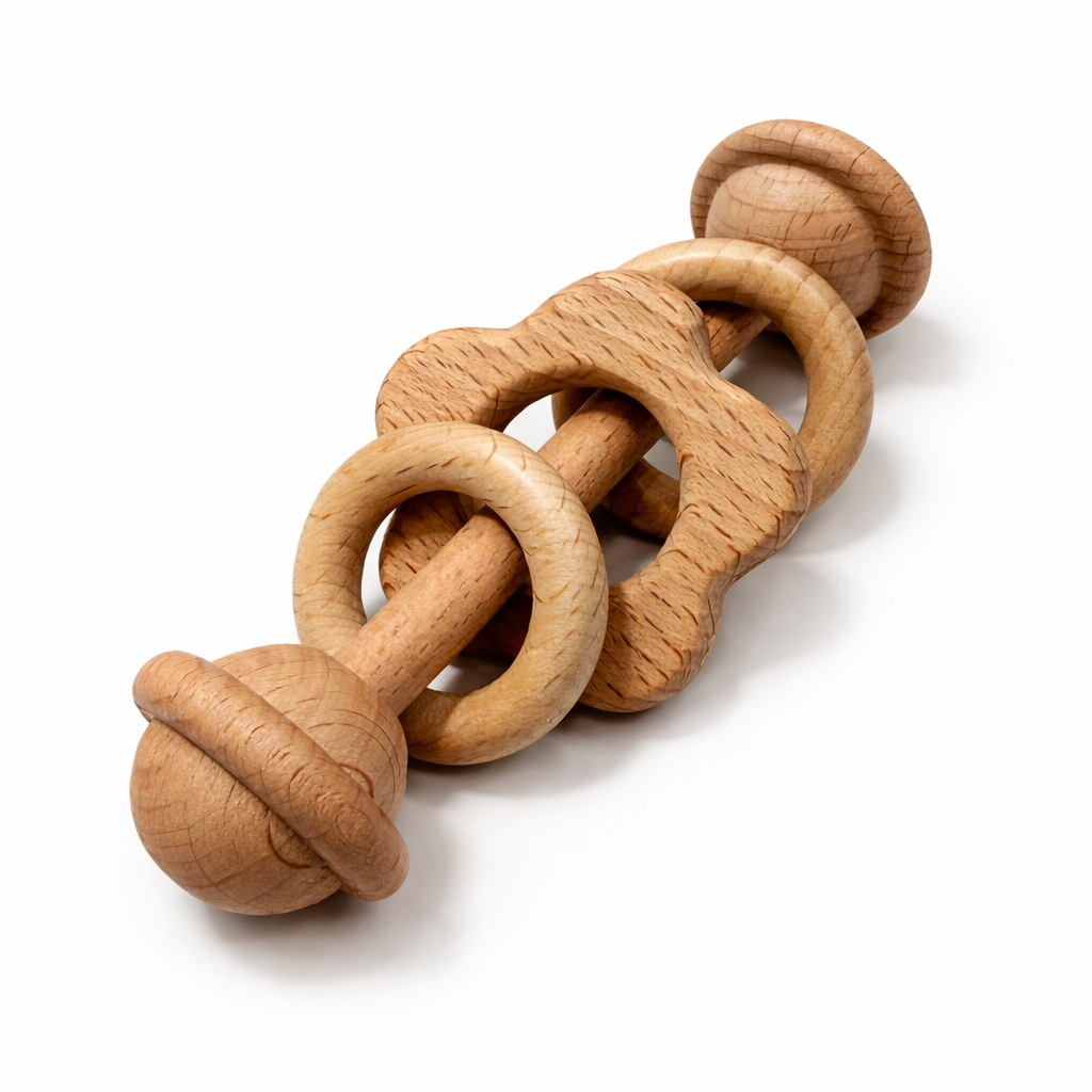 Wooden Daisy Rattle, is the perfect companion for your teething little one! Crafted from eco-friendly, sustainably sourced wood, this non-toxic rattle provides a safe and natural teething solution for your cherished baby.