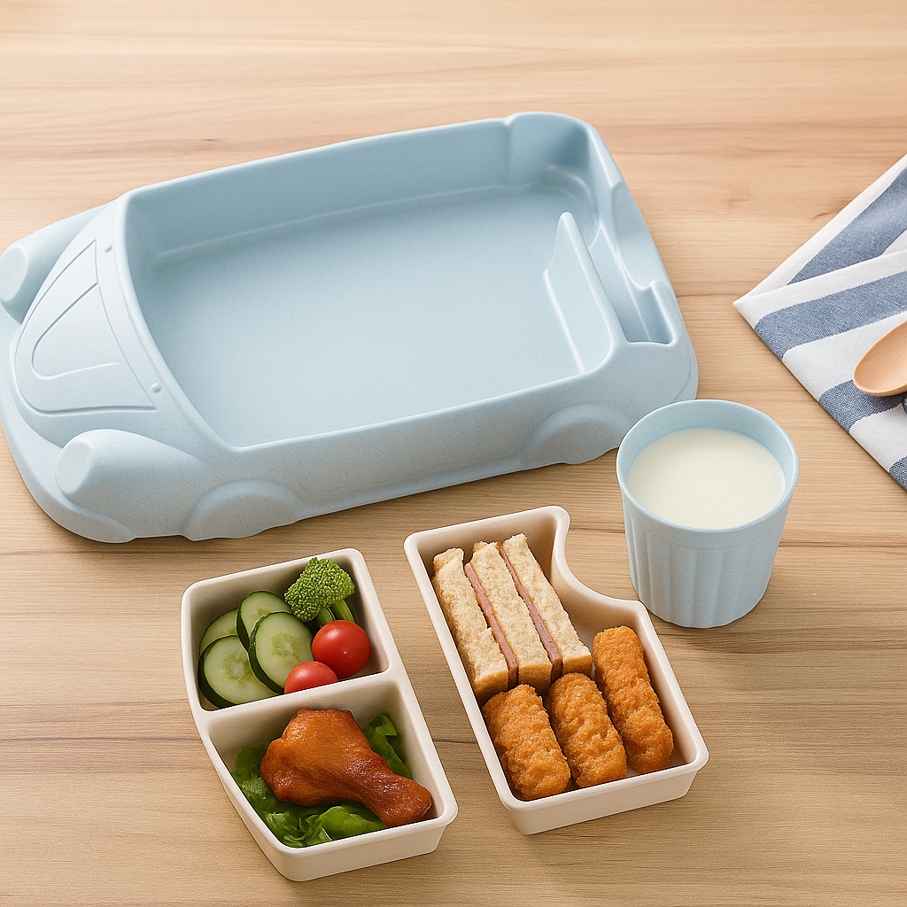 This bamboo fiber baby bowl set is designed for safe and convenient feeding, featuring an anti-fall design and a foldable structure.