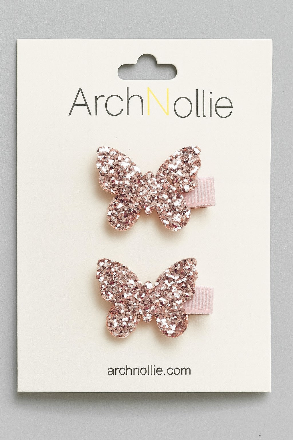Let your little one’s style take flight with these dazzling Glitter Butterfly Hair Clips from ArchNollie! Each set includes two sparkling butterfly clips in your choice of shimmering gold, pink, or silver. Made with glitter foam and set on soft grosgrain ribbon-covered clips, they’re designed for a secure and comfortable fit. Whether dressing up for a special occasion or adding magic to everyday outfits, these sweet accessories bring instant charm.