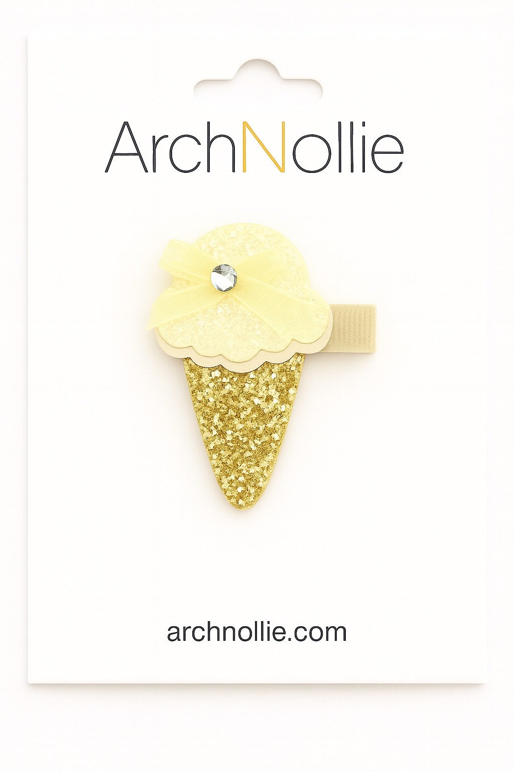 Add a scoop of sparkle to your little one’s day with our Glitter Ice Cream Hair Clips! With glittery waffle cones, shimmering scoops, and a sweet tulle bow topped with a gem “cherry,” these clips are the cutest accessory treat — minus the sugar rush!