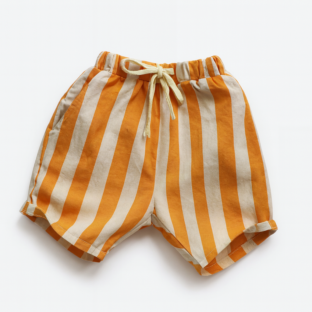 Bright, breezy, and effortlessly cool — the Sonny Stripe Shorts are a summer staple for playful days in the sun. Made from soft, breathable cotton-linen blend, these shorts feature bold vertical stripes in warm sunset orange and creamy white for a fun, retro-inspired look.